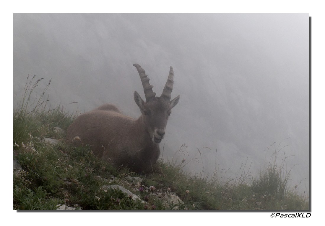 Malheureusement, la montée s’est faite entièrement dans les nuages ainsi que l’arrivée au sommet.