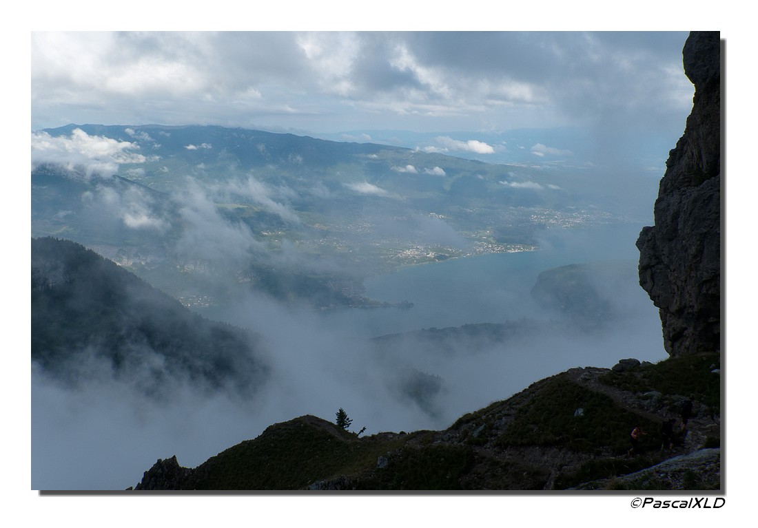 En haut de La Tournette on est sensé avoir un panorama exceptionnel sur le lac d’Annecy en contrebas, le massif du Mont-Blanc, les alpes suisses, puis plus au sud la Vanoise et les écrins.