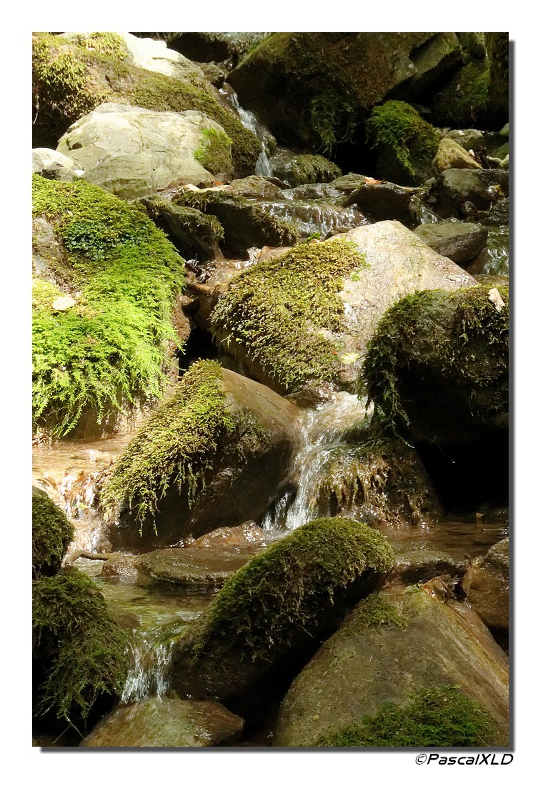 Joli petit cours d’eau se frayant un chemin au milieu de ces pierres moussues.