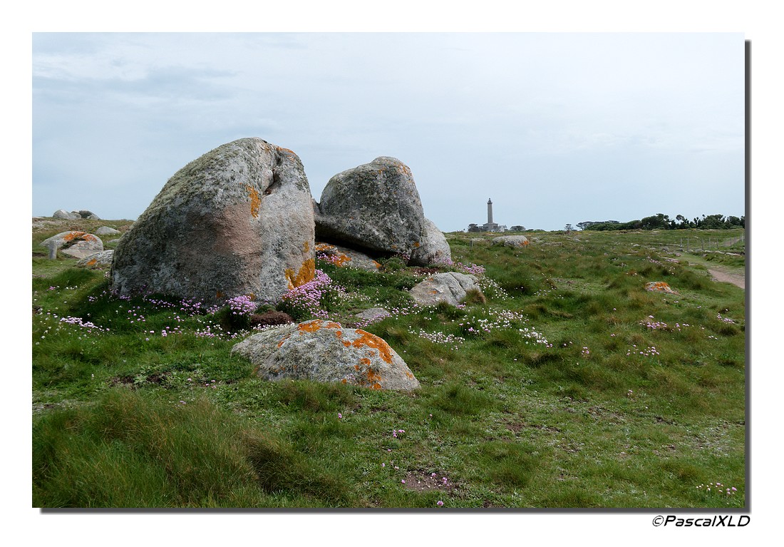 j’aime les rochers entourés de fleurs et le phare au loin, Pascal…