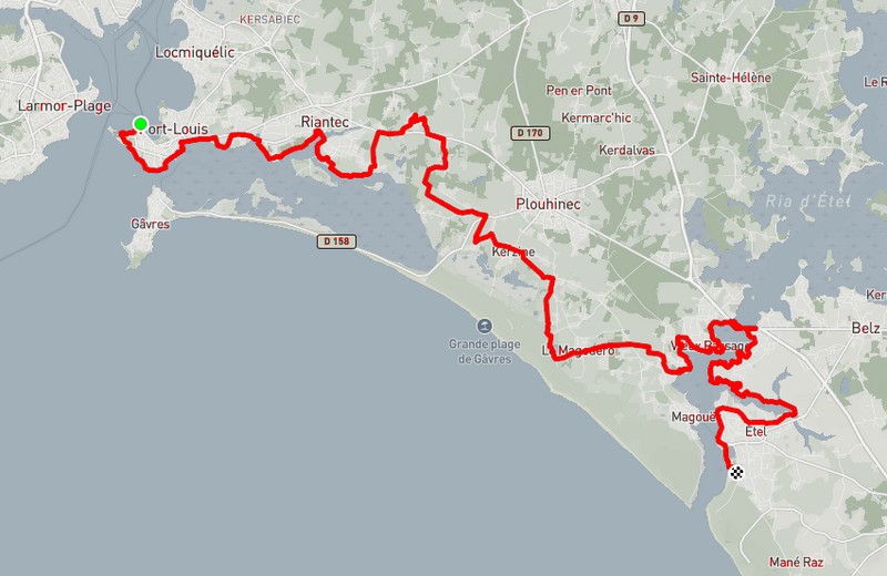 Le 1er jour je suis parti de Port-louis pour rejoindre Etel, soit 33,6 km.